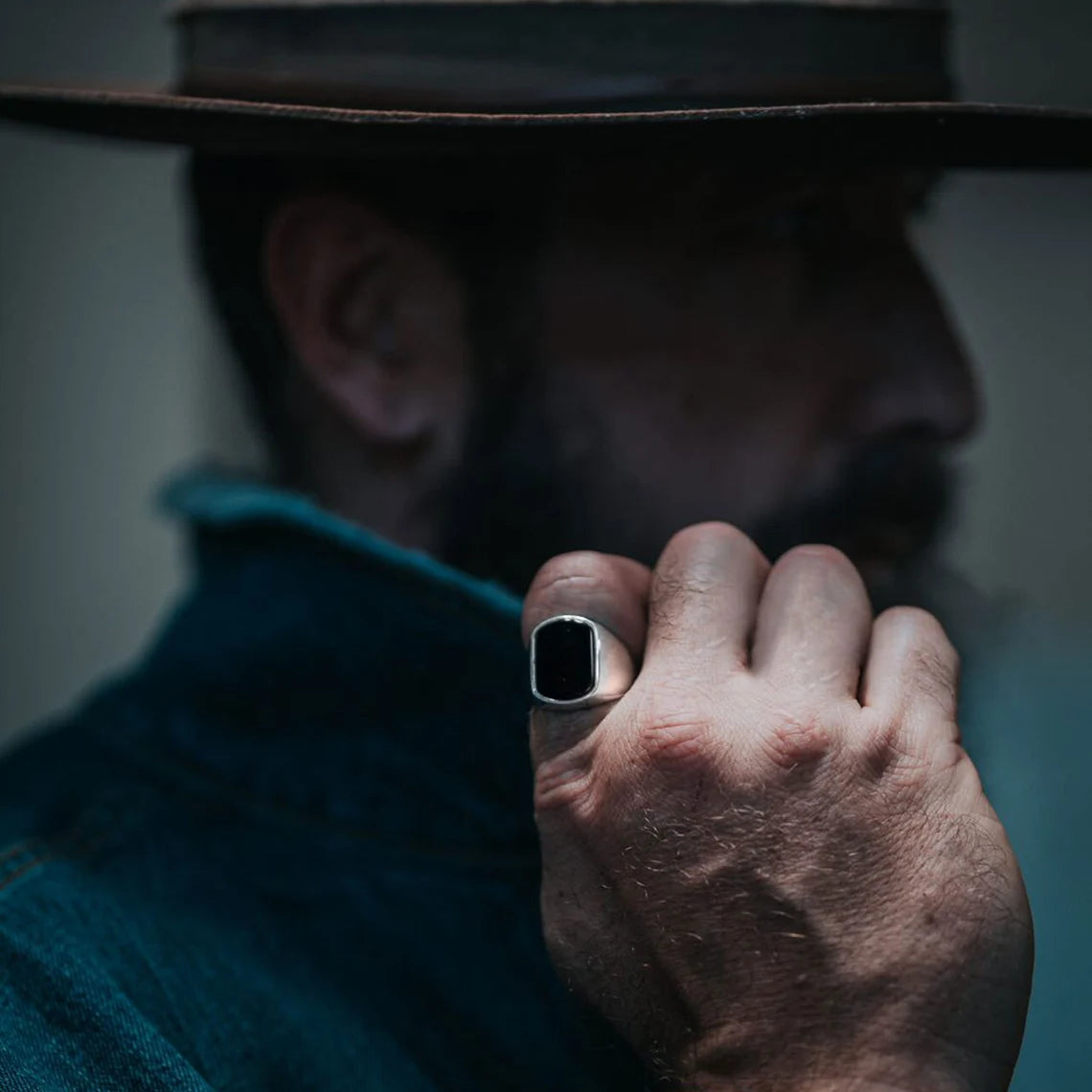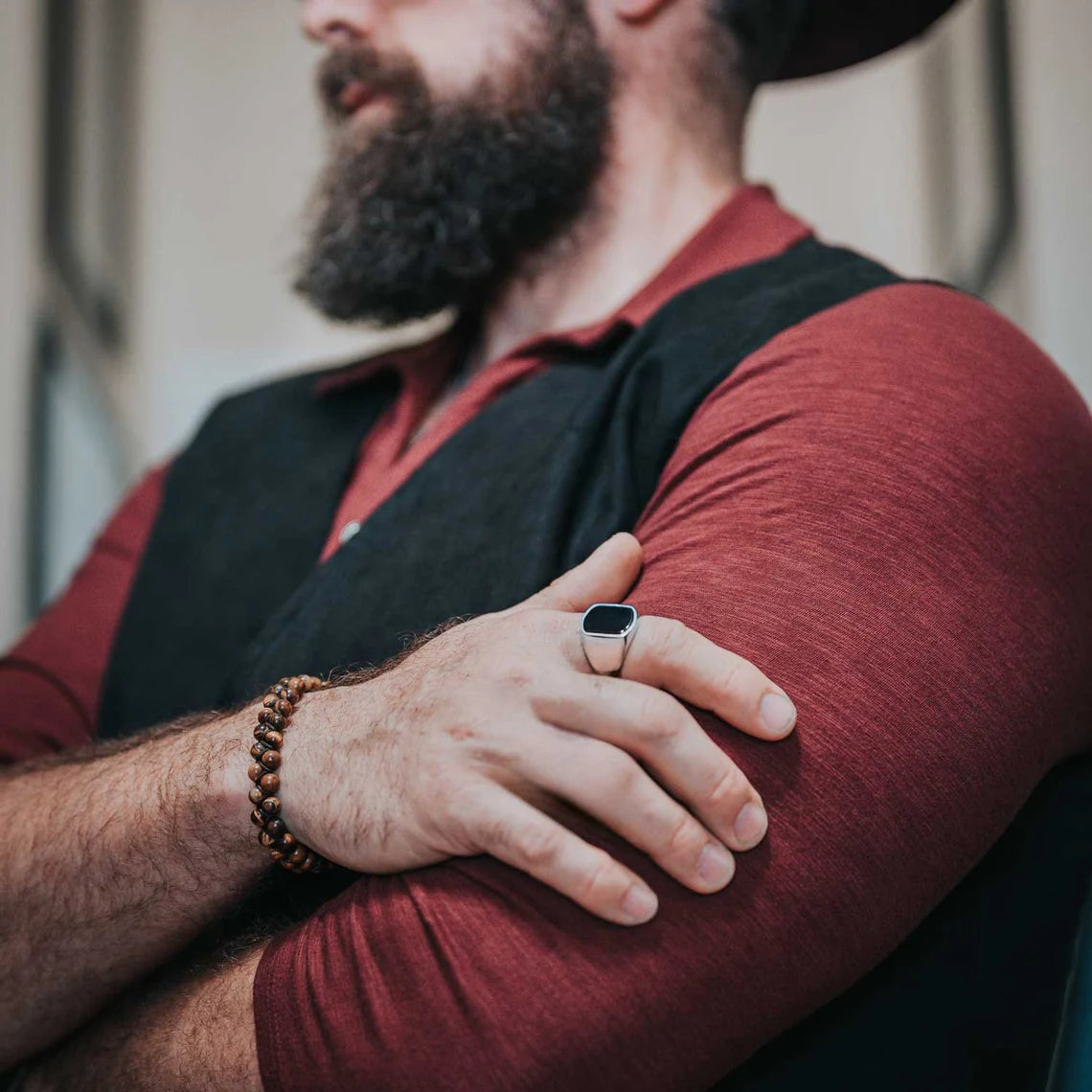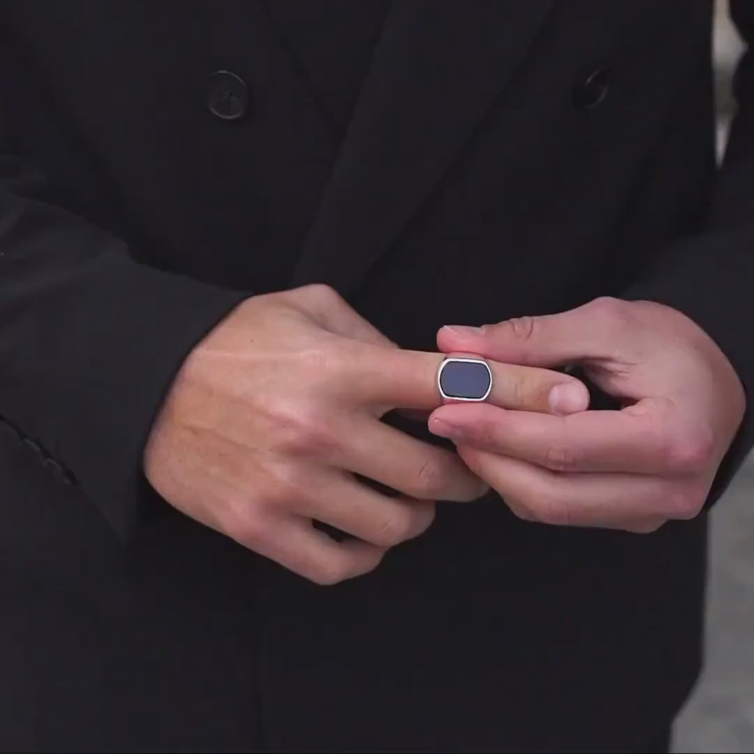 - Classic signet ring design with black onyx stone